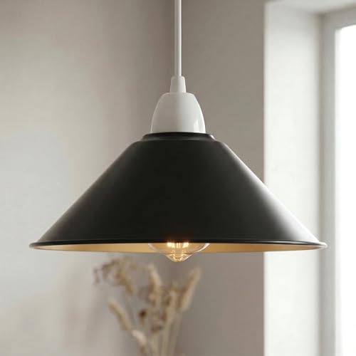 Black Ceiling Light Shade, Metal Lampshades for Ceiling Lights, Modern Easy Fit Pendant Lamp Shades for Table Lamps, Living Room, Bedroom, Kitchen, Hallway, Home Décor, Office