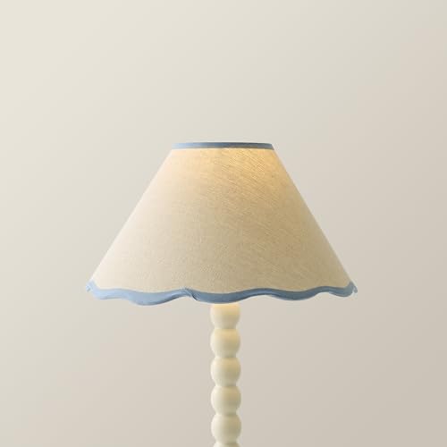 ValueLights | Small Natural Linen Tapered Light Shade with Blue Scallop Trim for Table Lamp | Lamp Shades, Home Décor & Improvement Essential | 27cm Shade Width