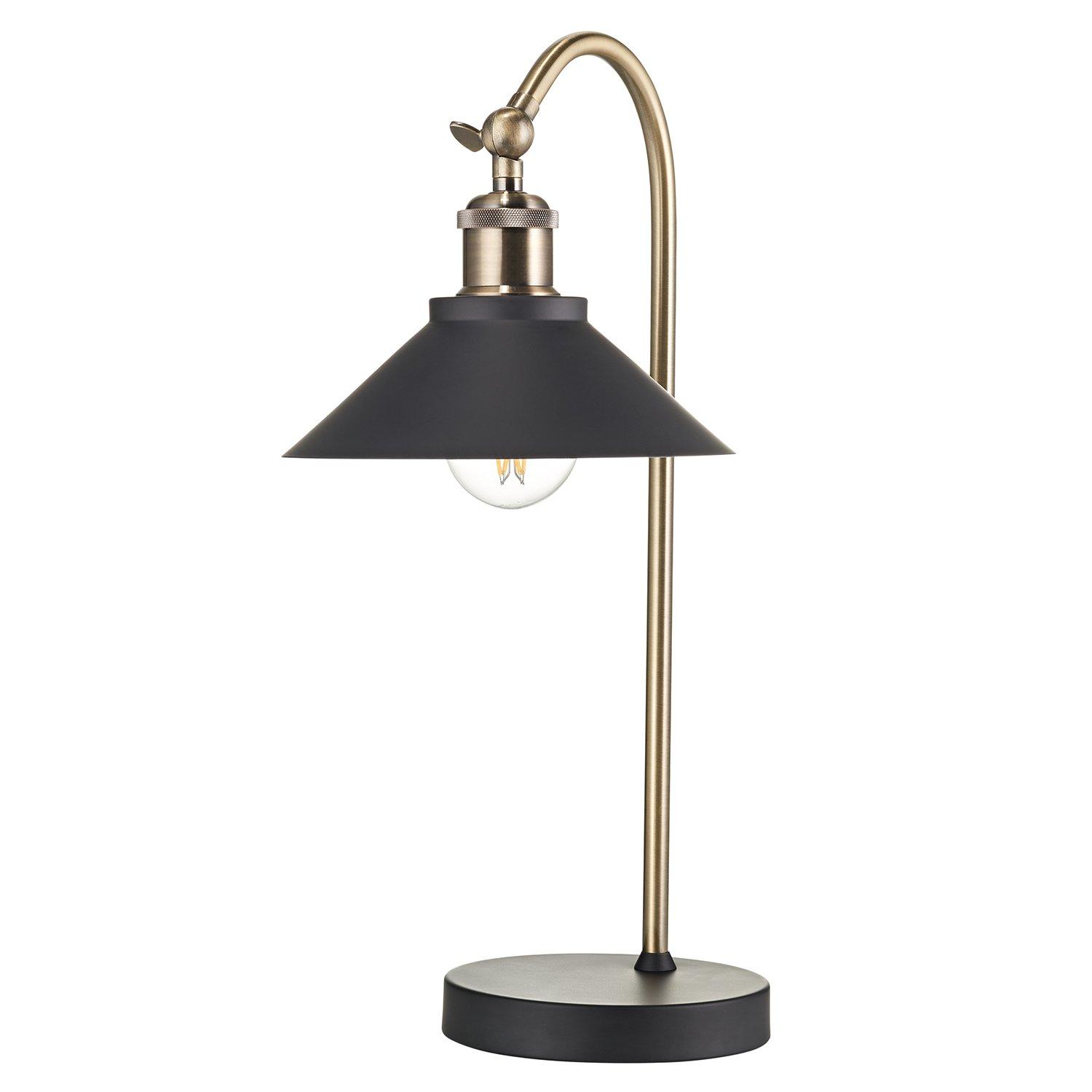 Traditional Industrial Brushed Antique Brass Plated Table Lamp with Black Shade