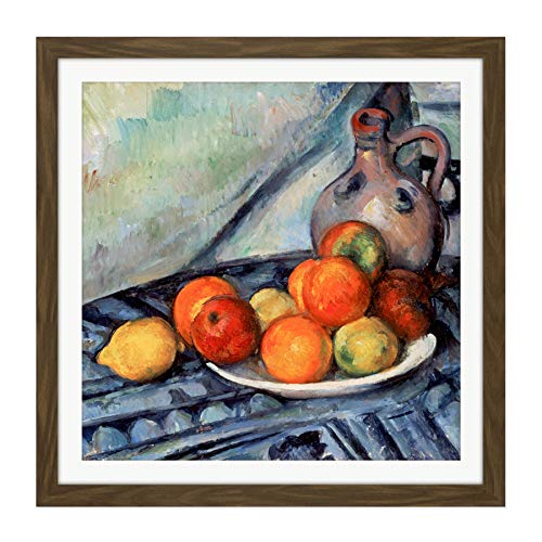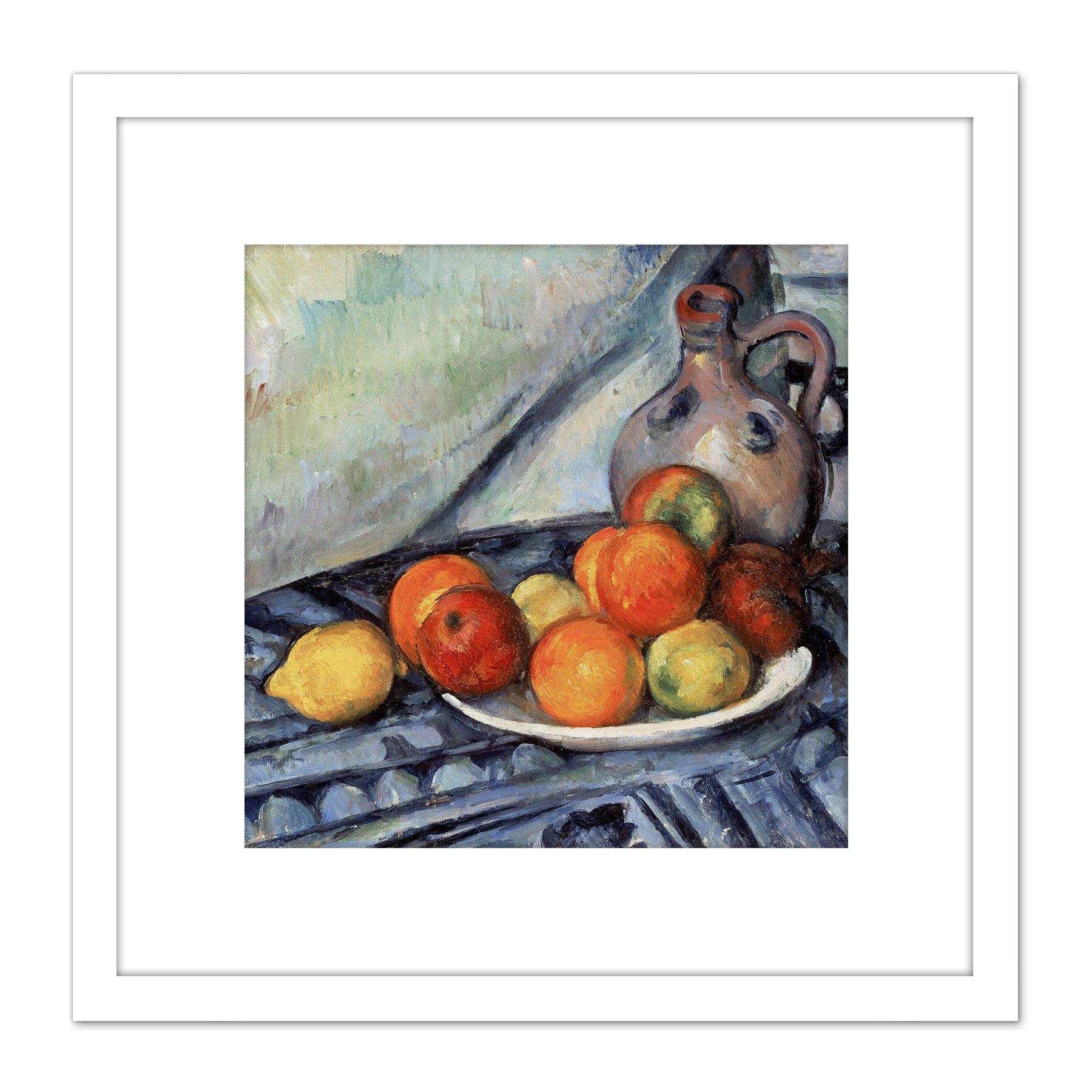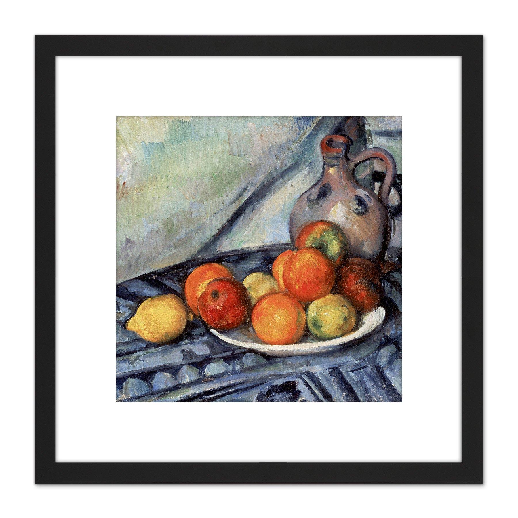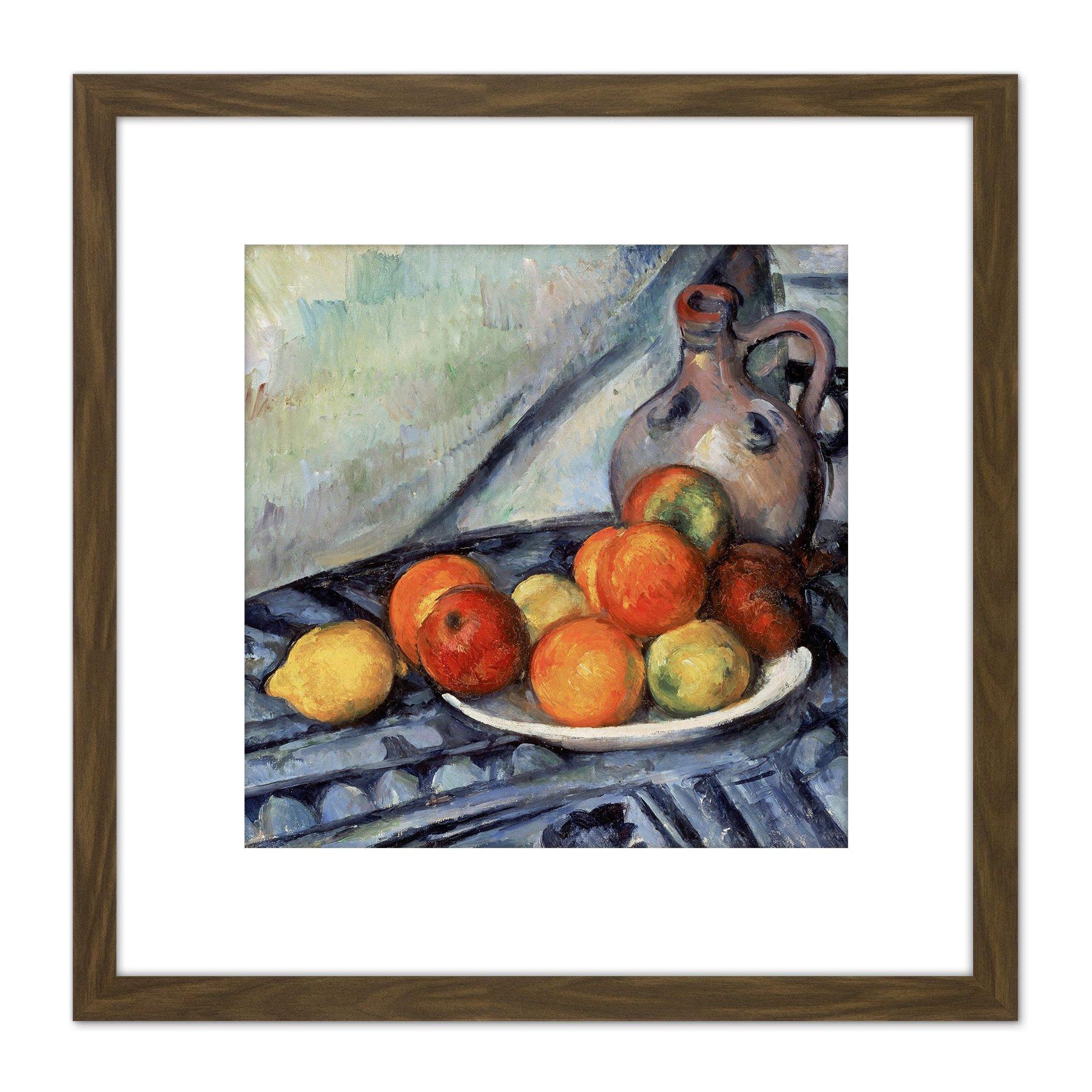 Paul Cezanne Fruit And A Jug On A Table Cropped 8X8 Inch Square Wooden Framed Wall Art Print Picture with Mount