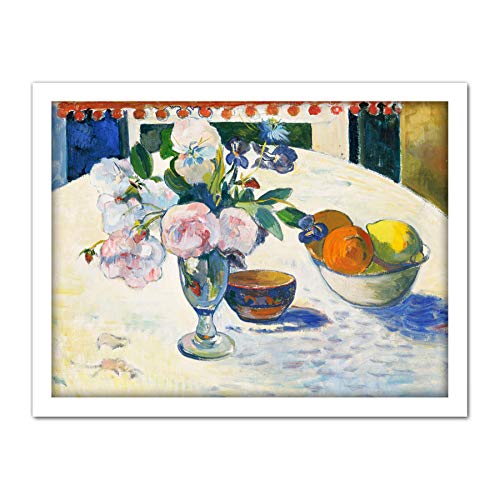 Paul Gauguin Flowers And A Bowl Of Fruit On A Table Large Framed Art Print Poster Wall Decor 18x24