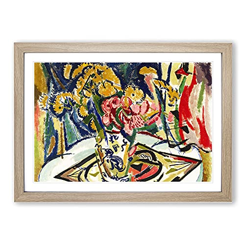 Big Box Art Flowers On A Table Vol.1 by Henry Lyman Sayen Framed Wall Art Picture Print Ready to Hang, Oak A2 (62 x 45 cm)