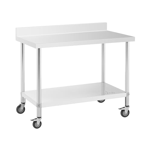 Royal Catering RCAT-120/60-WS Stainless Steel Table with Wheels and Upstand 60 x 120 cm 158 kg Load Capacity Work Table with Wheels Work Table on Wheels Work Table Castors