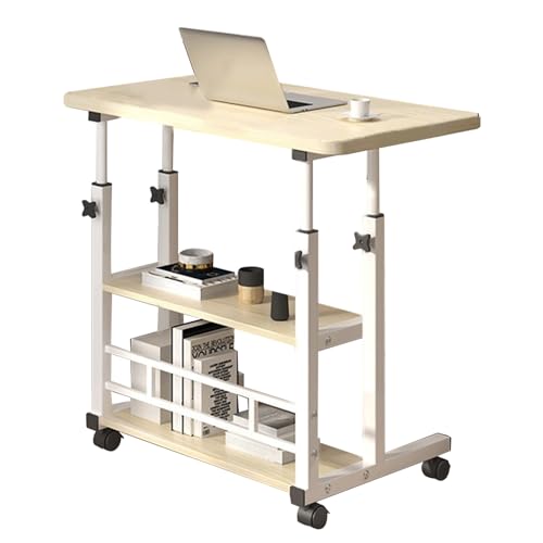 Gtzly Height Adjustable Table Portable Desk for Small Spaces Laptop Table Rolling on Wheels Mobile Couch Desk with Storage Rack (Color : Natural, Size : 60 * 40cm/23.6 * 15.7in)