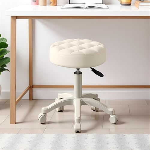 ilkqeppe Dressing Table Stool on Wheels, 35-53cm High Adjustable Vanity Stool with Wheels for Makeup, Faux Leather Soft Cushion Swivel Stools for Home Office Spa Salon
