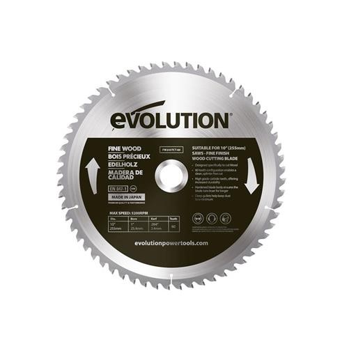 Evolution Fine Wood Mitre/Table Saw Blade 255 x 25.4mm x 60T EVLFW255TC60
