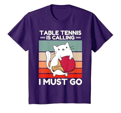 Vintage Kitten Cat Table Tennis is Calling I Must Go T-Shirt, Youth, Purple, Small