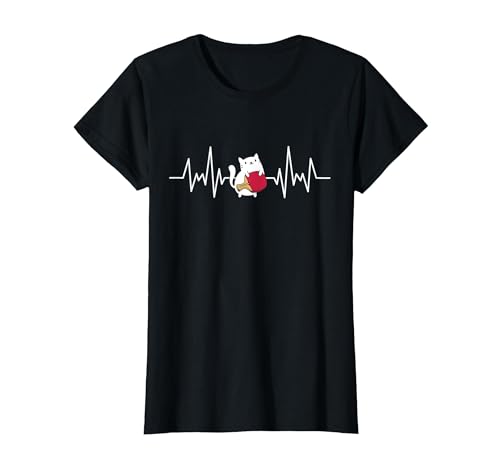 Vintage Cat Table Tennis Retro Cat Table Tennis Heartbeat T-Shirt, Women, Black, X-Small