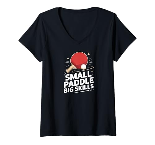 Women's Small Paddle Big Skills Ping Pong Table Tennis V-Neck T-Shirt