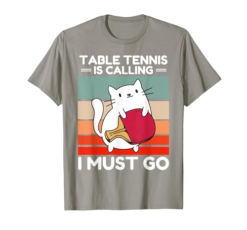 Vintage Kitten Cat Table Tennis is Calling I Must Go T-Shirt, Men, Slate Grey, Small