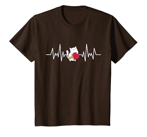 Vintage Cat Table Tennis Retro Cat Table Tennis Heartbeat T-Shirt, Youth, Brown, X-Small