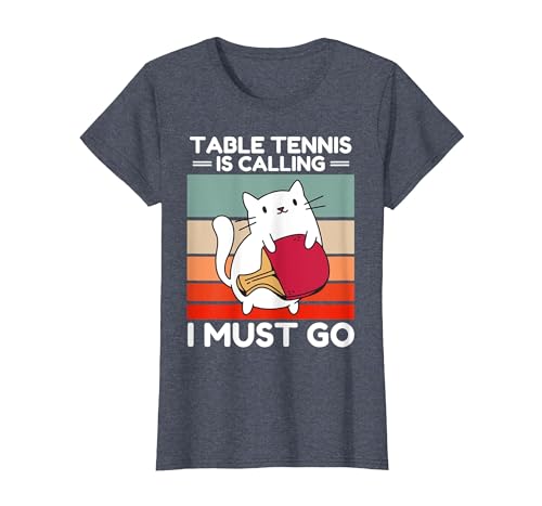 Vintage Kitten Cat Table Tennis is Calling I Must Go T-Shirt, Women, Heather Blue, X-Small