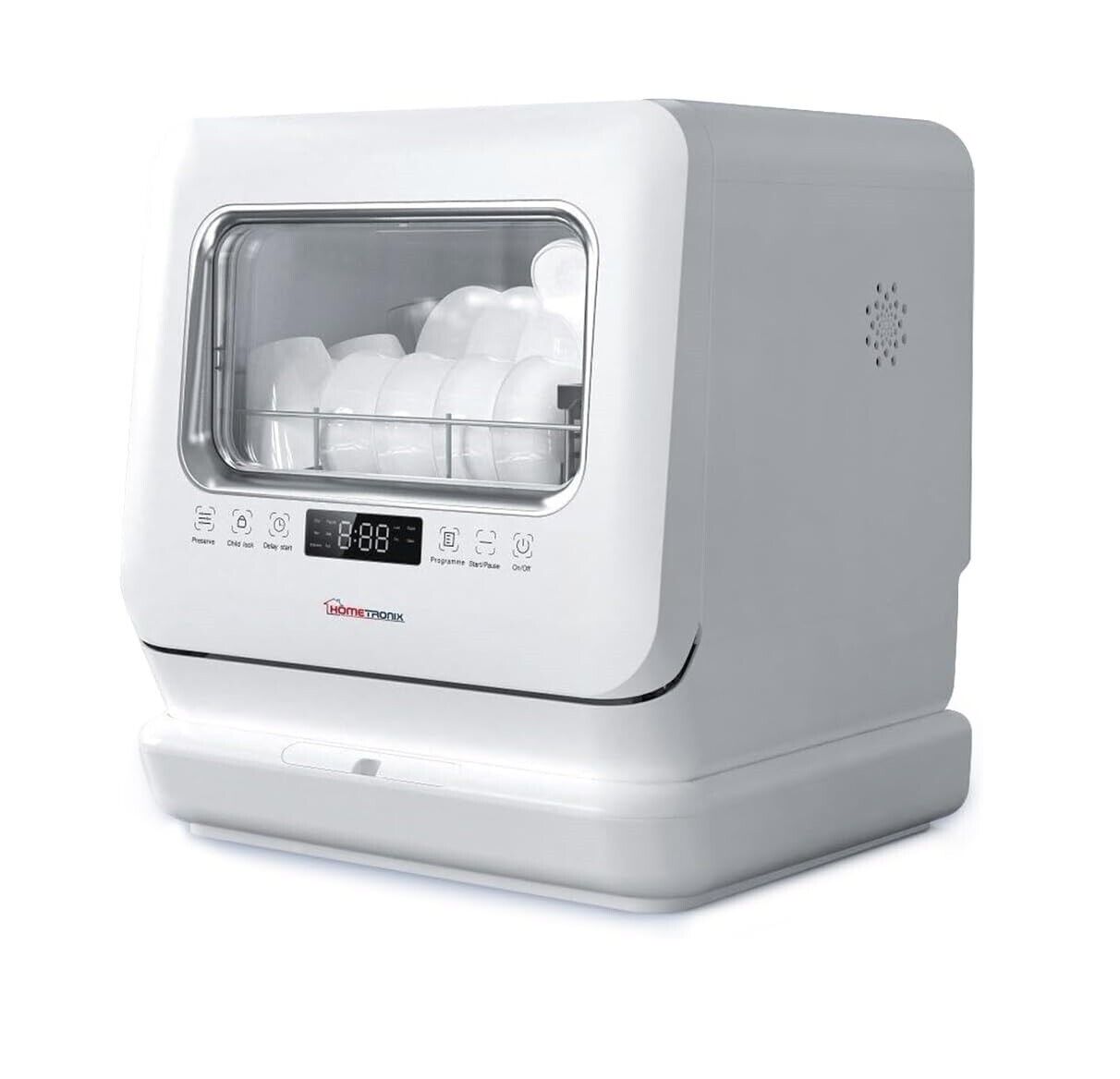 HomeTronix Mini Table Top Dishwasher Compact Countertop Dishwasher with 3 Place Settings, 6 Programmes, Touch Control, LED Display, Wash Dry and Fresh Function,7.5L Water Tank- White