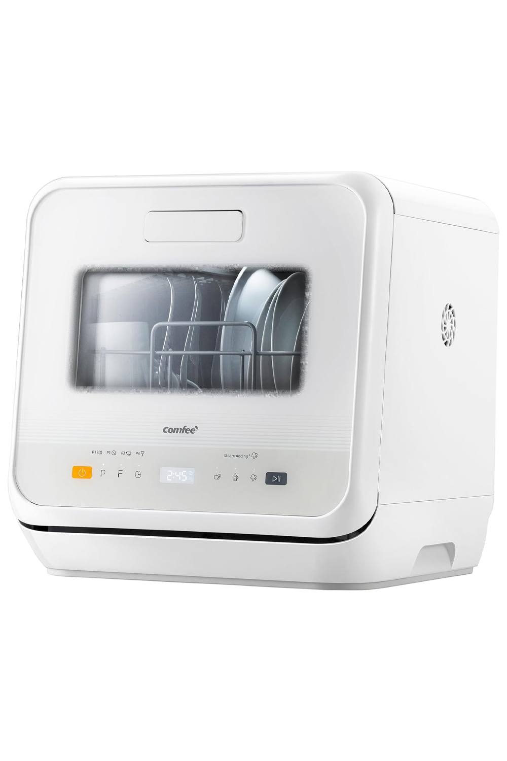 COMFEE' Table Top Dishwasher 7+3 Programs Mini Tabletop Dishwasher No Plumbing, 6L Built-in Water Tank, Hygiene Wash, Auto Door Open Drying, Energy Class D- White