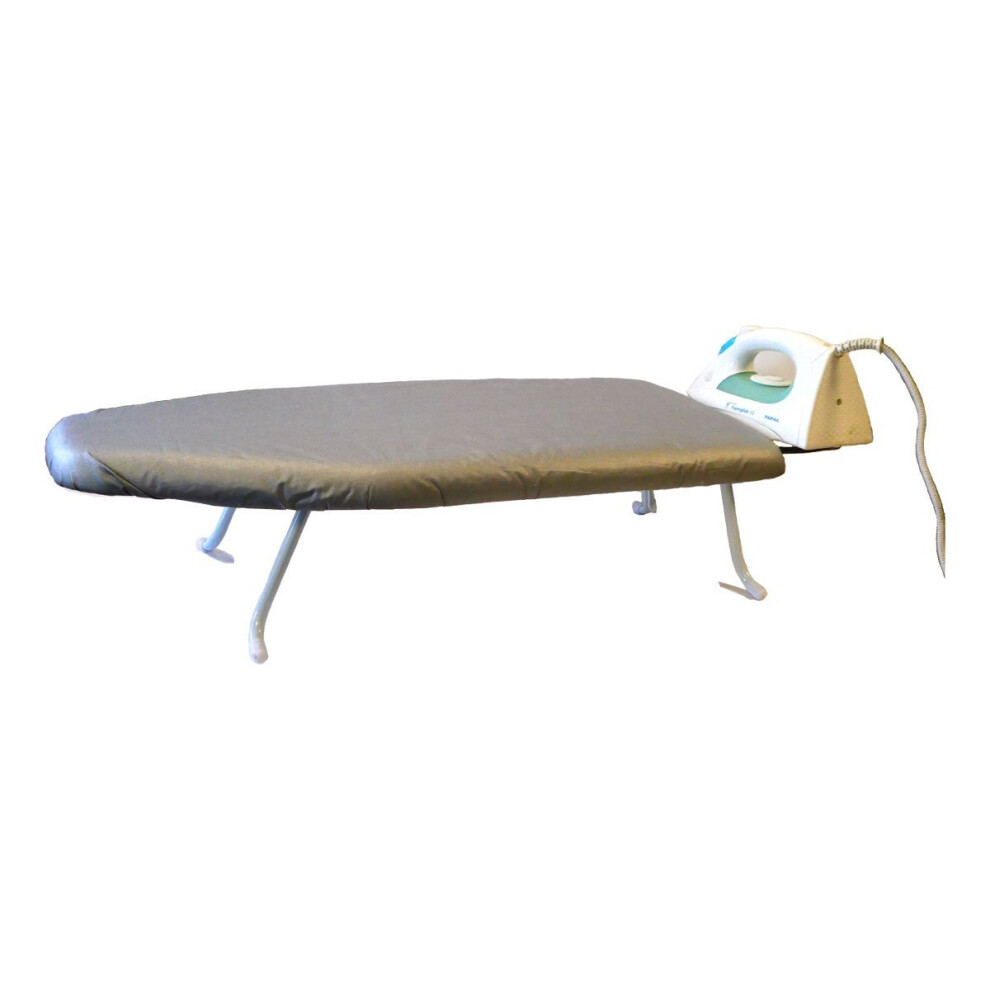 Grey Foldable Table Top Ironing Board Compact Space Saving with Cover Iron Rest