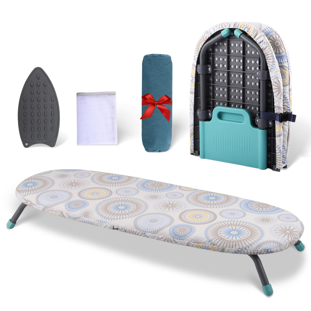 Foldable Ironing Board, Table Top Ironing Board with Iron Rest & Ironing Mat