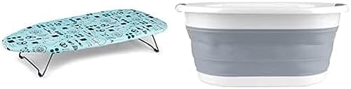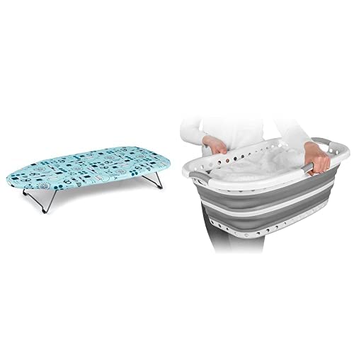 Beldray LA023735SEW Table Top & Desk Ironing Board, 73 x 31cm + Beldray LA072979GRYEU Collapsible Hip Hugger Laundry Basket