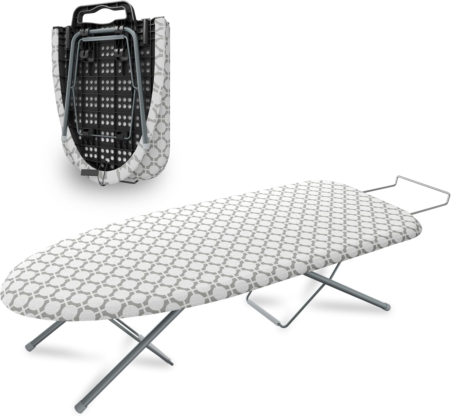 Household Essentials Steel Top Table Top Ironing Board with Iron Rest, Steel Mesh with Cotton Cover, Gray and White