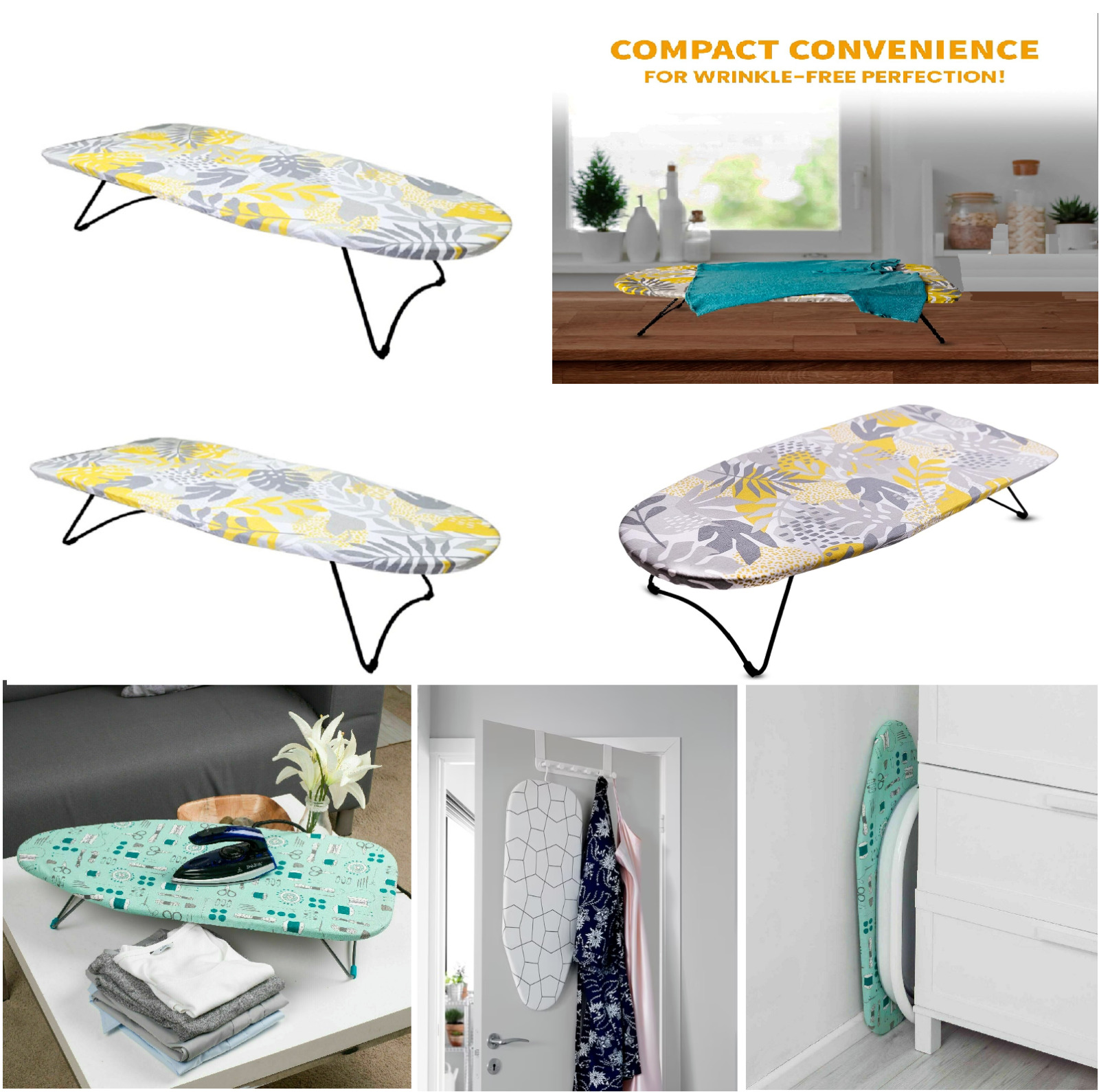 Small Mini Ironing Board Table Top Space Saving Durable Folds Flat hung on hook