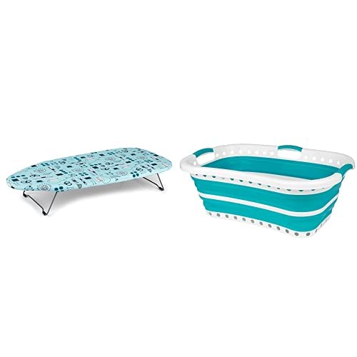 Beldray LA023735SEW Table Top & Desk Ironing Board, 73 x 31cm + Beldray LA072979TQEU Collapsible Hip Hugger Laundry Basket