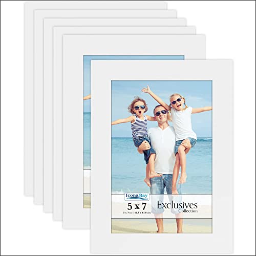 Icona Bay - 7x5 Picture Frames - White, 6 Pack - Sturdy Engineered Wood Photo Frames 7 x 5 - Sleek Design, Table Top or Wall Mount - Exclusives Collection