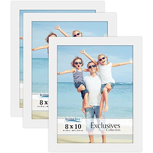 Icona Bay - 10x8 Picture Frames - White, 3 Pack - Sturdy Engineered Wood Photo Frames 10 x 8 - Sleek Design, Table Top or Wall Mount - Exclusives Collection