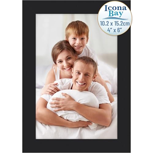 Icona Bay - 6x4 Black Picture Frame - Modern Style Engineered Wood Frame - Table Top or Wall Mount - Bliss Collection