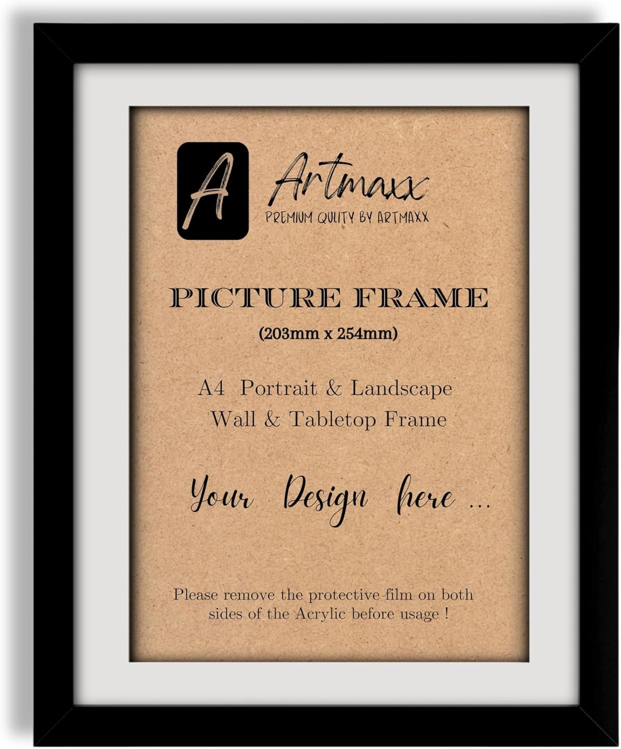 Artmaxx A4 Black Photo Frame, for Graduation Certificates and A4 Pictures, for Table Top or Wall Mount, Transparent, Non-breaking Acrylic Glass Front, Solid Wood