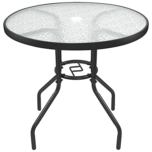The Fellie Patio Table Outdoor Tempered Glass Top Dining Table Round Coffee Table with Umbrella Hole for Garden, Backyard, Balcony (φ105 x 72 cm-Round Table, Black)