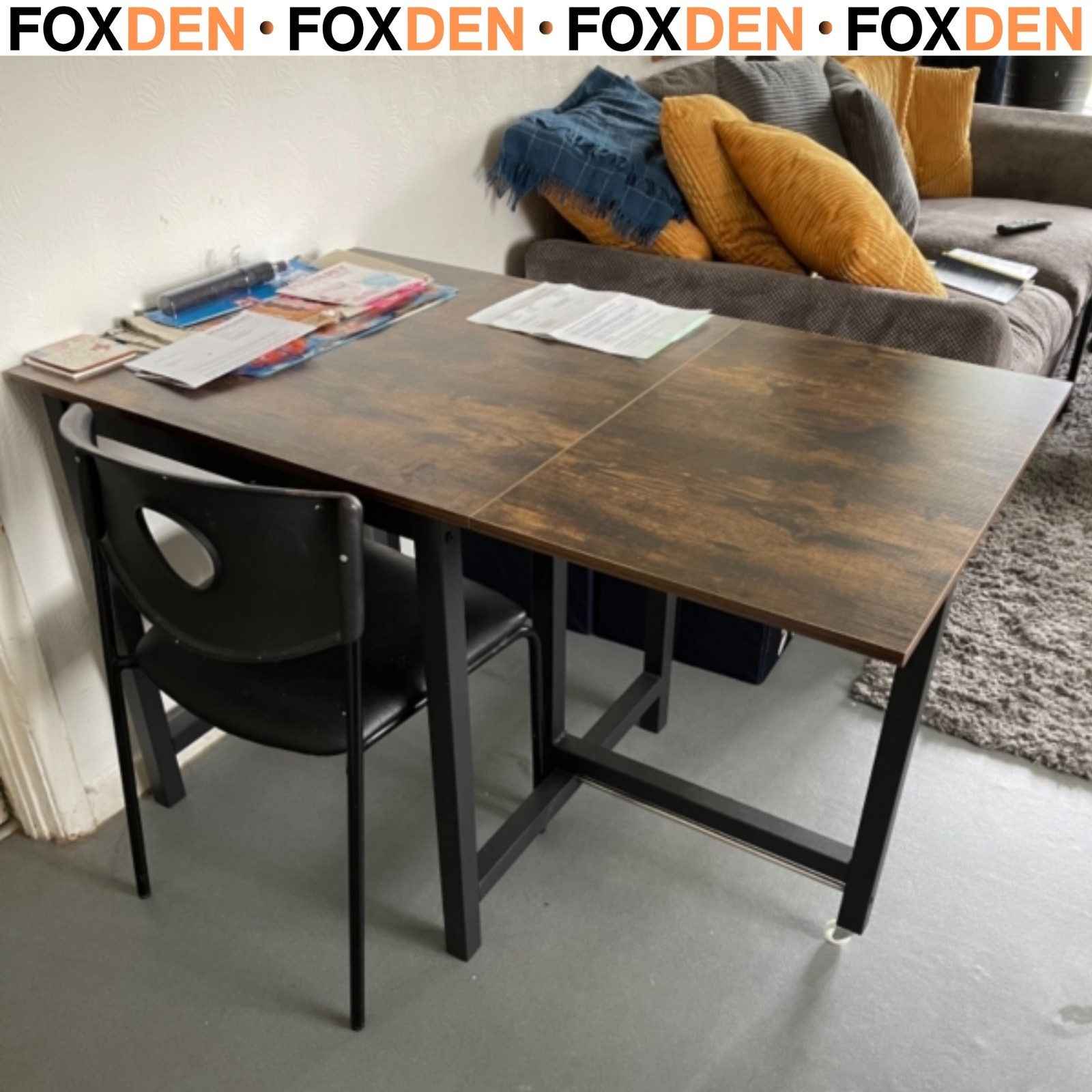 Industrial Drop Leaf Dining Table Folding Table with Wheels Metal Frame Kitchen