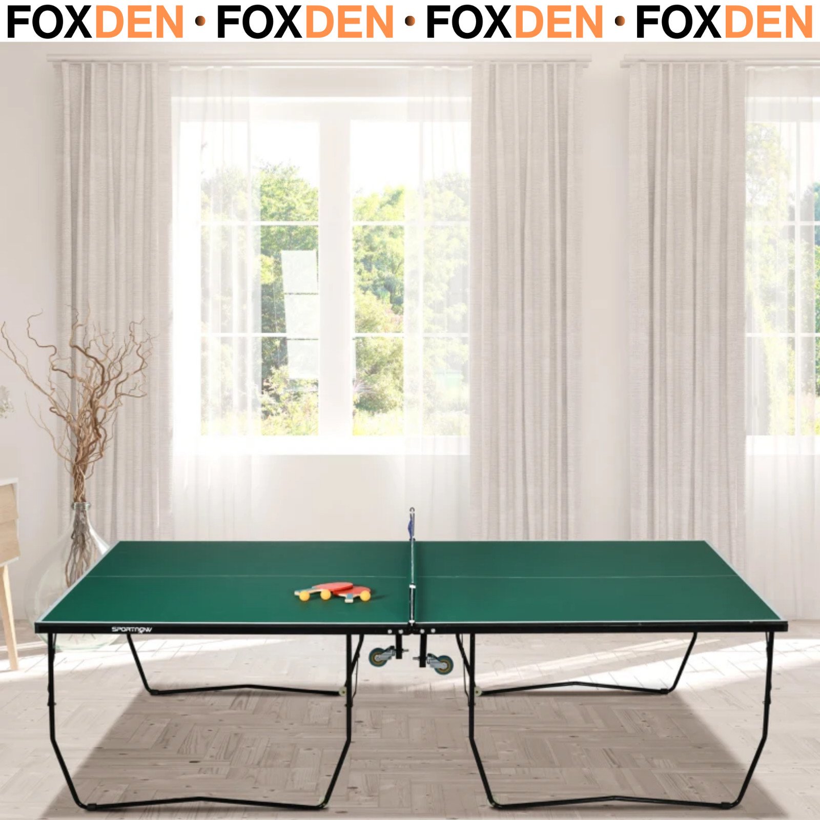 9FT Table Tennis Table w/ 8 Wheels, Folding Ping Pong Table for Indoor Green