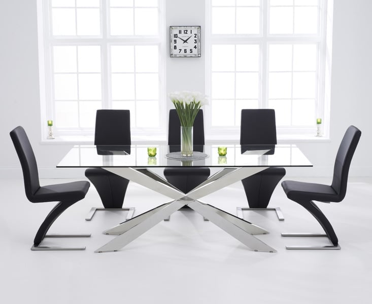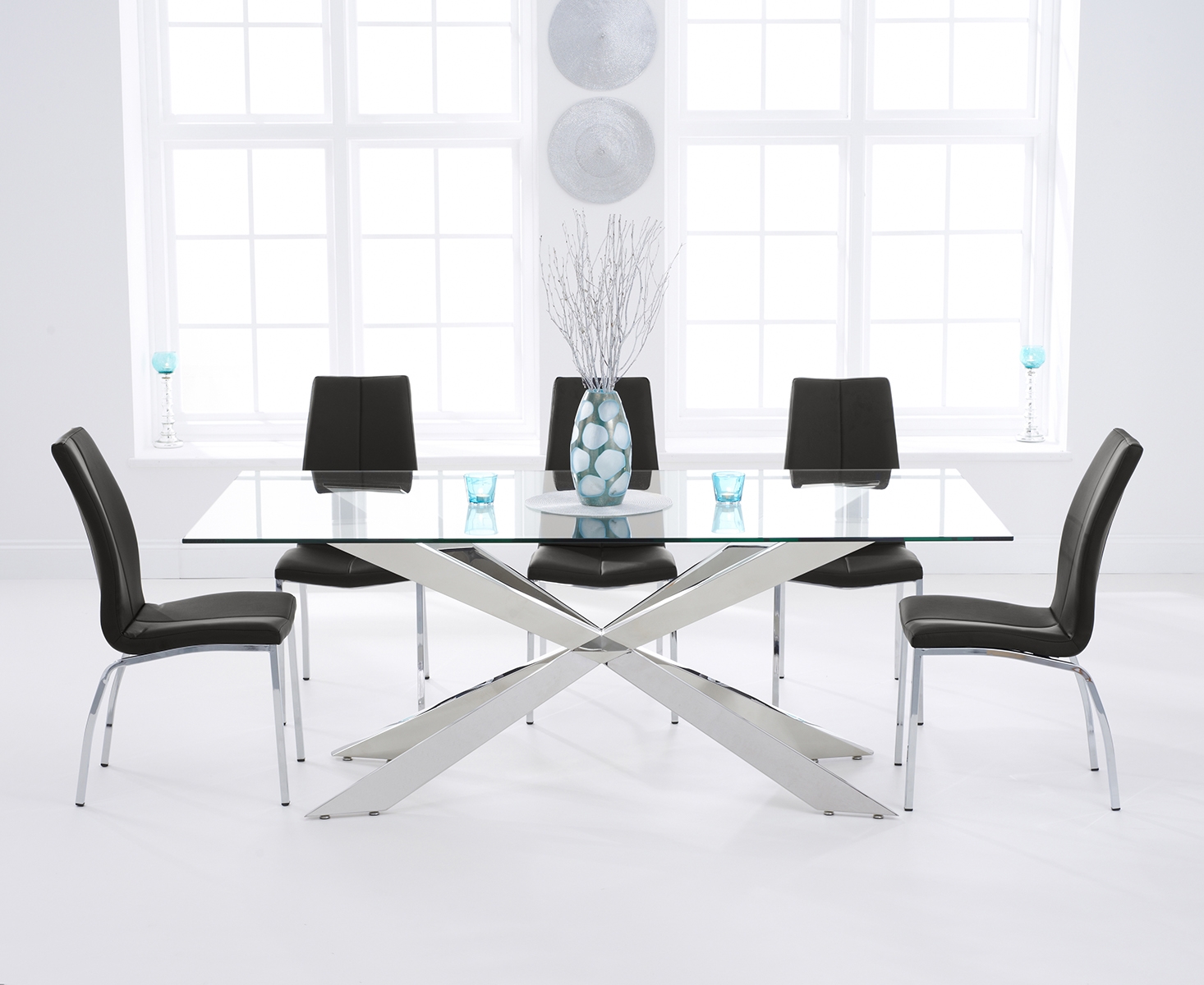 Canova 200cm Glass Dining Table with 6 White Marco Chairs
