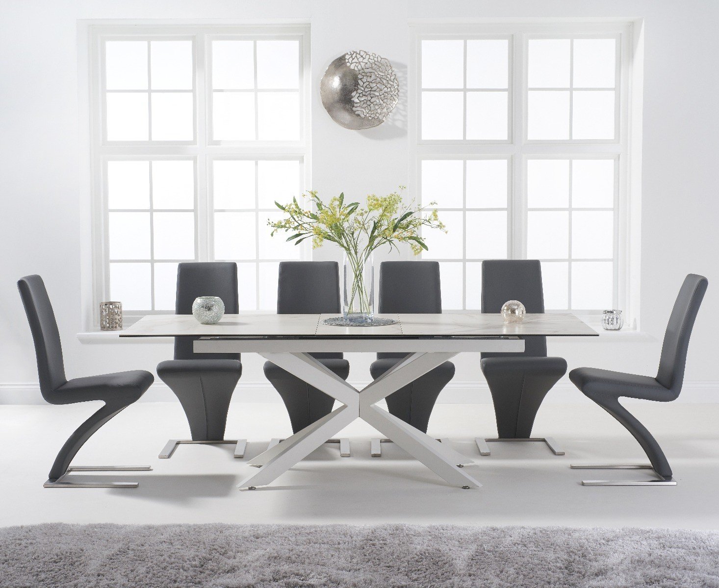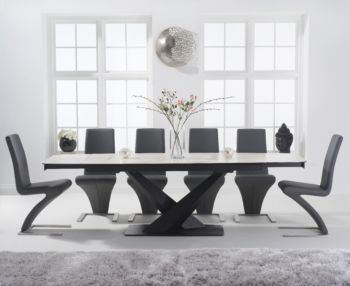 Extending Boston 180cm White Ceramic Dining Table with 6 White Aldo Chairs