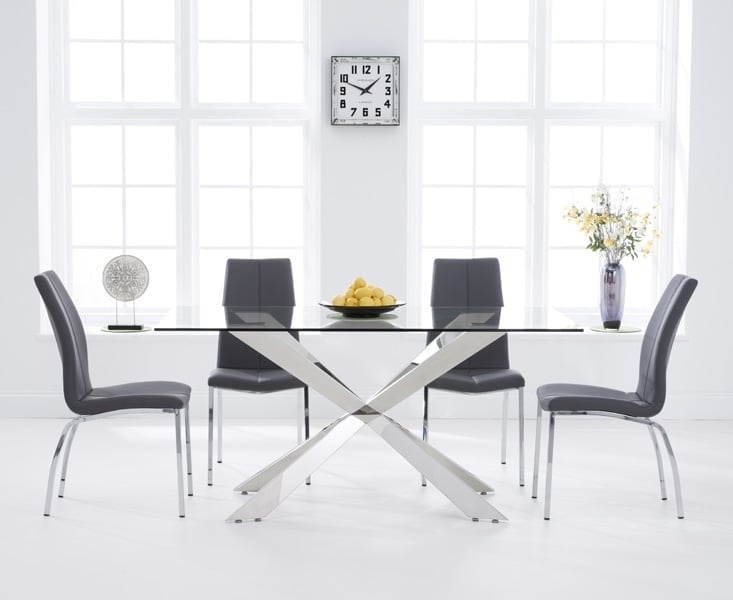 Canova 160cm Glass Dining Table with 4 White Marco Chairs