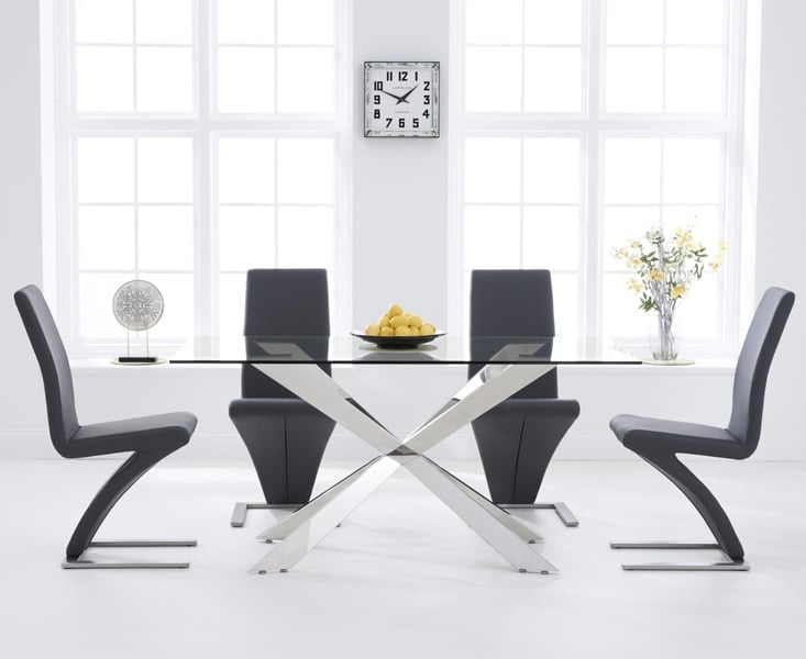 Bernini 160cm Black Leg Rectangular Glass Dining Table with 4 White Marco Chairs