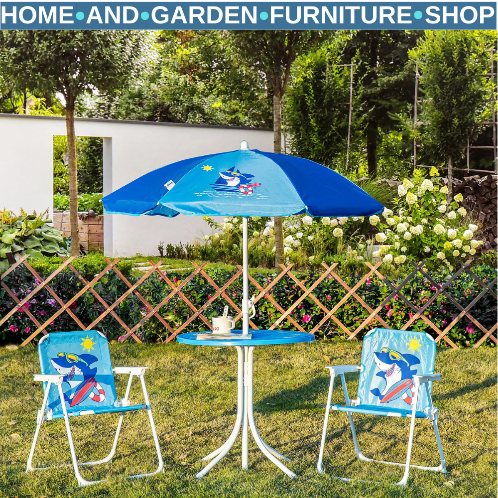 Children's 4-Piece Foldable Garden Set with Table, Chairs, and Parasol Blue