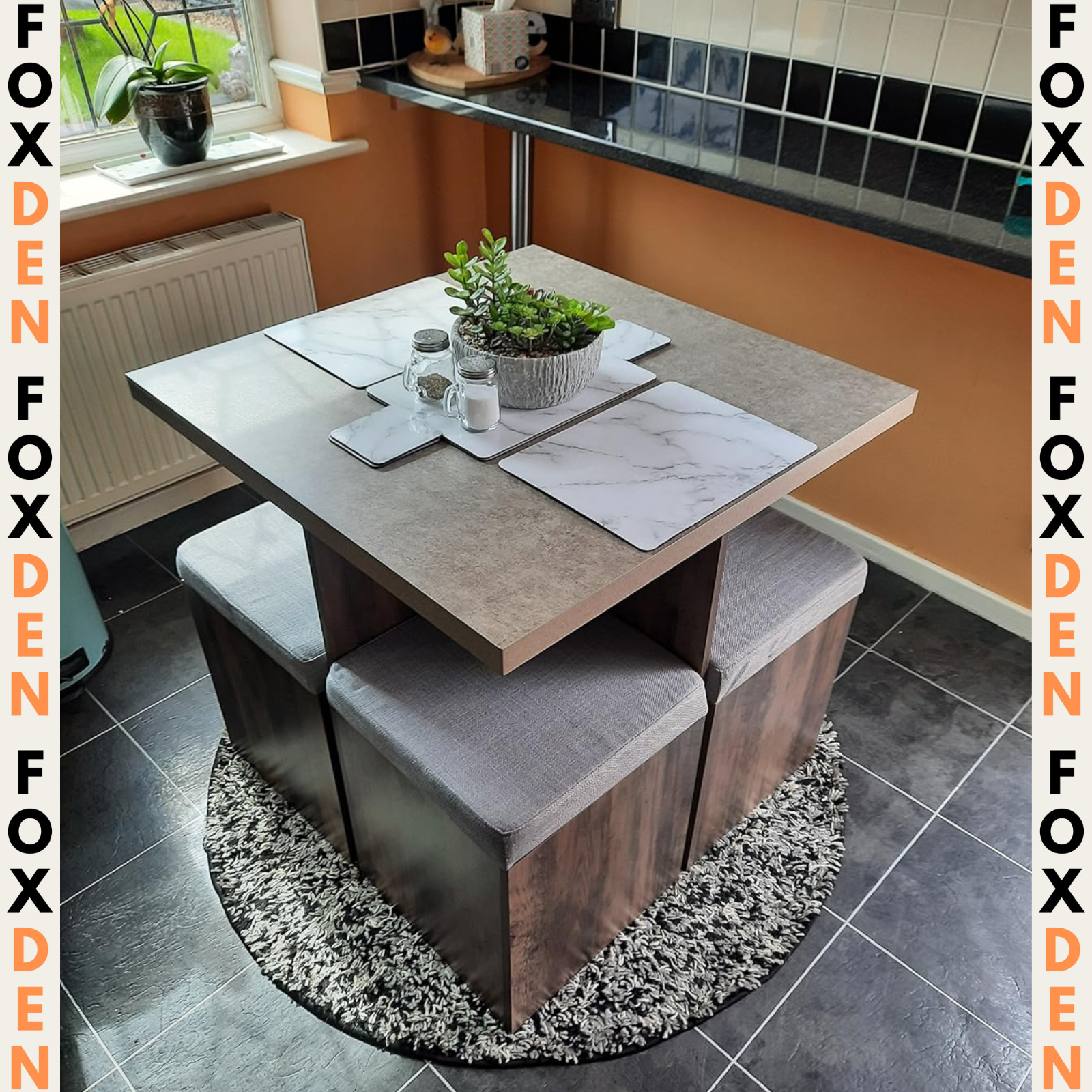 Space Saving Dining Table Chairs Set Small Stools Compact Kitchen Breakfast Bar
