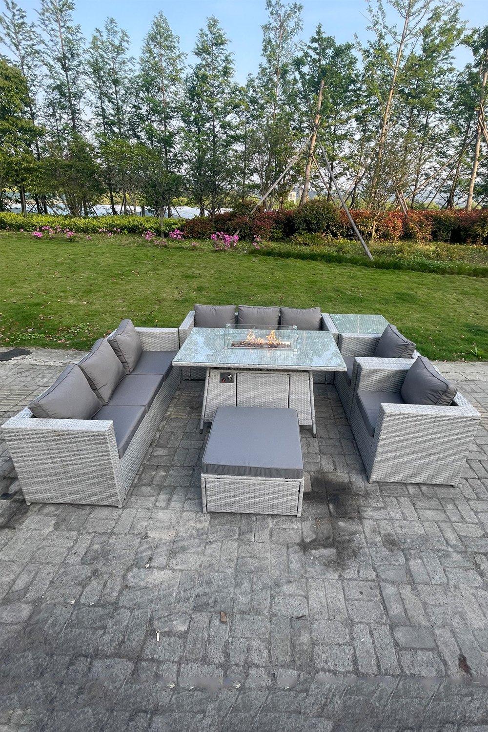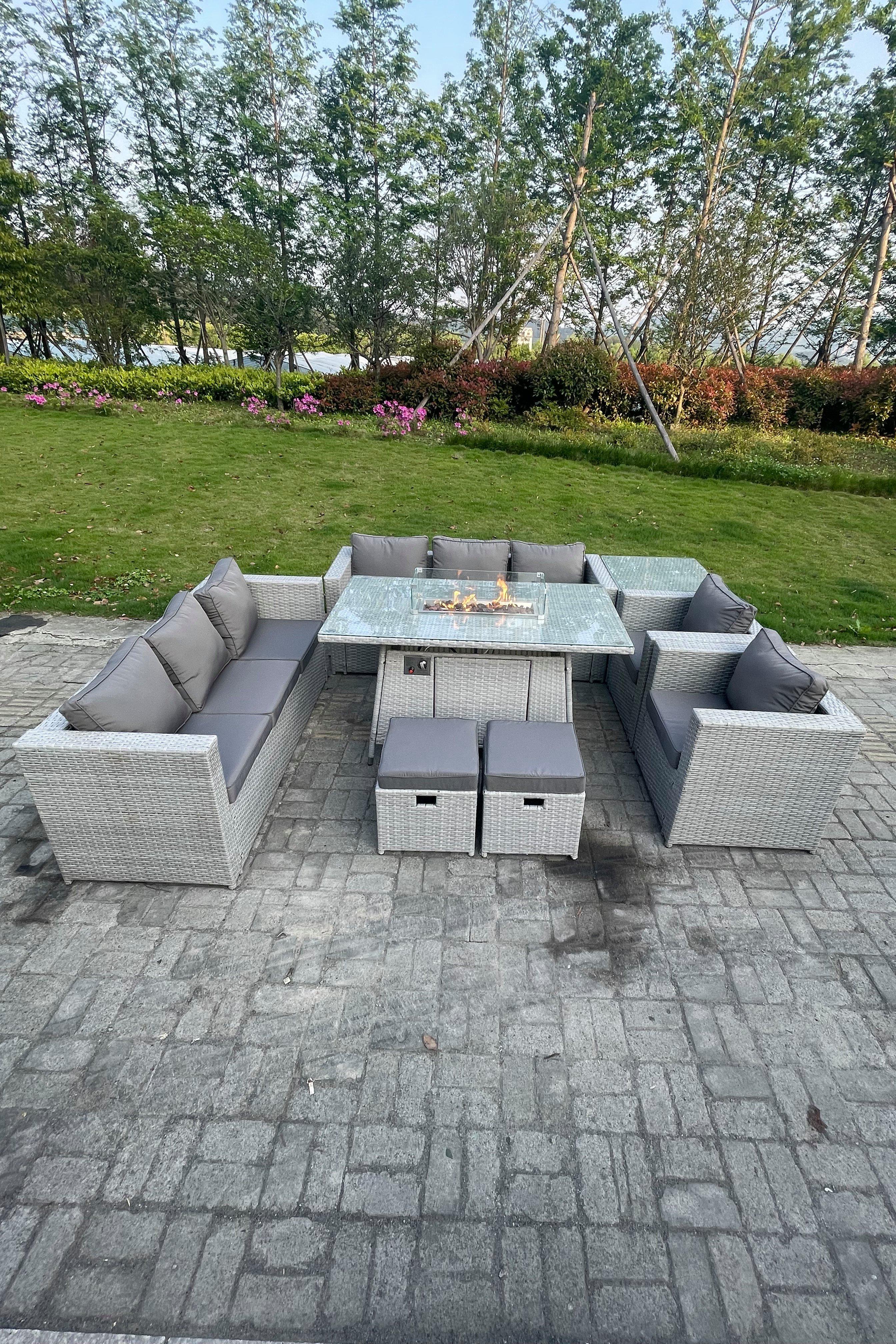 Rattan Fire Pit Garden Furniture Set Gas Heater Burner Lounge Sofa Dining Set Coffee Table Chairs