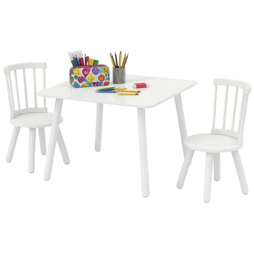 Maxmass Kids Table and Chair Set, Wooden Toddler Play Table with Solid Wood Legs, Children Activity Tables Furniture Set for Learning Writing Eating Drawing Crafting Playing (White)