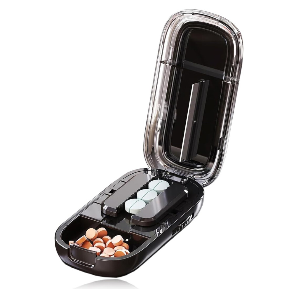 Tablet Divider, Multiple Pill Cutter, Tablet Divider for All Tablets, Portable, 1 in 2 Divided, Multifunctional Medicine Cutter, Medicine Box (Black)