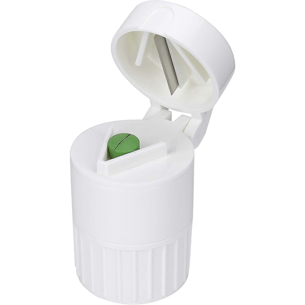 Pill Cutter - Durable Tablet Splitter, Mini Medicine Organizer | 4 in 1 Portable Case with Precision for Accurate Cutting Tiny Pills, Handy Storage Box Seniors Children Nurses Office Cam