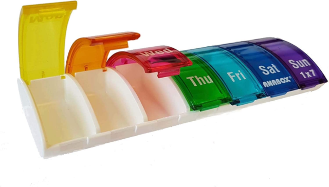 Anabox 1 X 7 Weekly Pill Box / Tablet Organiser in Rainbow Colour