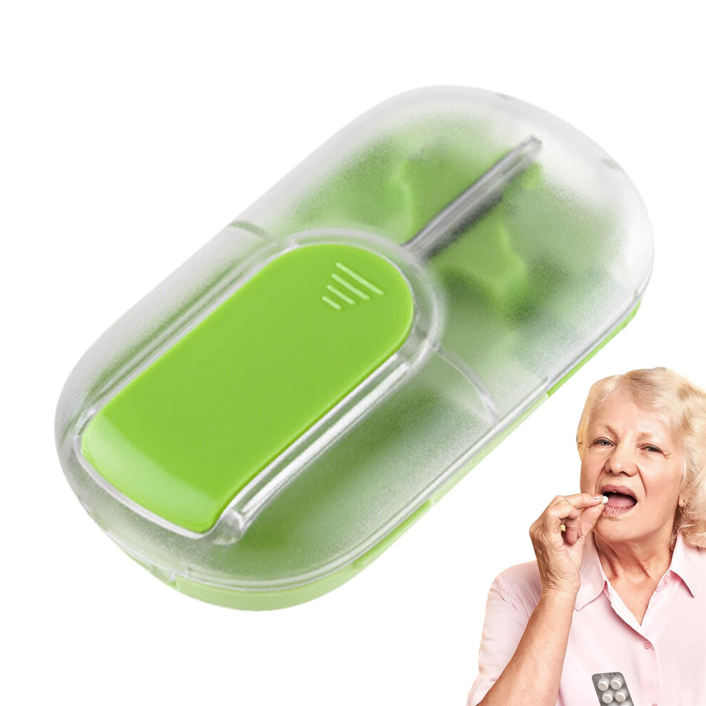 Pill Splitter, Pill Organizer - Reusable Portable Medicine Box for Daily Use, Multi-Purpose Tablet Storage in Green