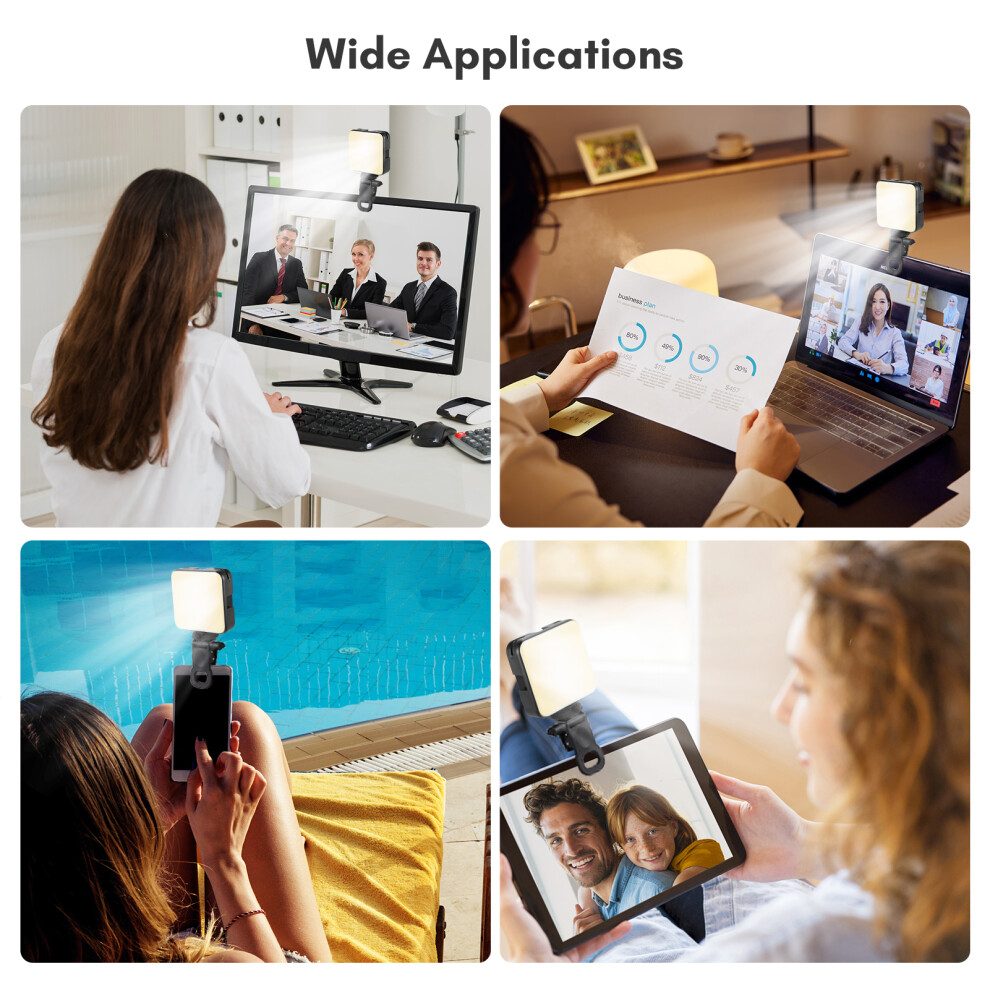 Andoer W64RGB Mini Clip-on RGB Video Light - 2500K-9000K Dimmable, 20 Effects, for Mobile, Tablet, Online Meeting, Live Streaming, Selfie