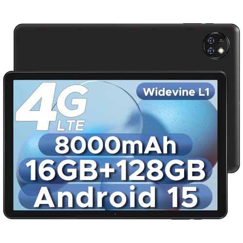 DOOGEE T10W 10 Inch Tablet Android 15, 8000mAh Long-lasting Battery, 16GB ROM + 128GB ROM (2TB Expandable), 4G LTE Tablet with SIM Card Slot, Face Unlock, USB Type-C, 5GHz WiFi, GPS (Black)