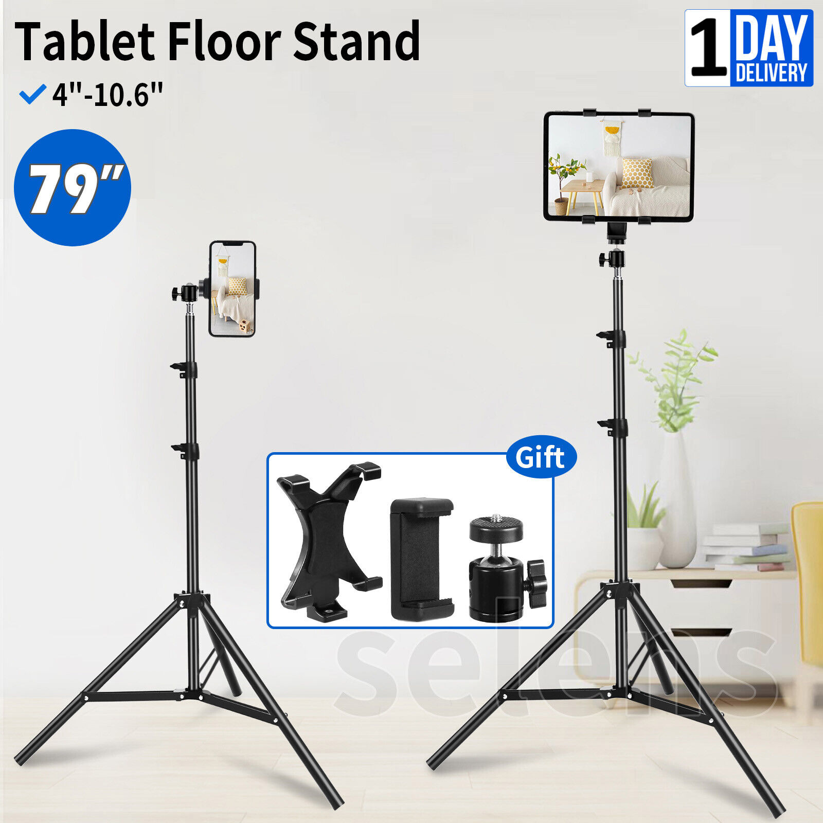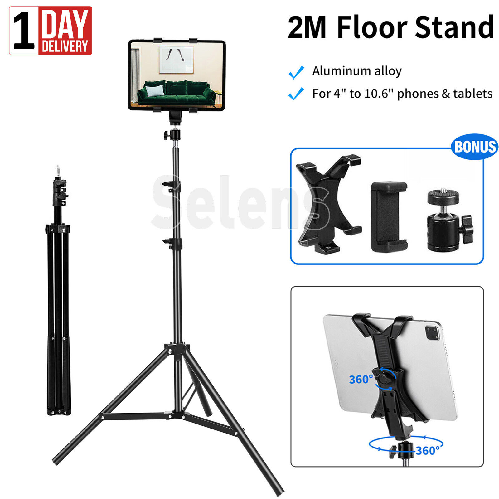 Selens 79" Tablet Tripod Floor Stand Phone iPad Clips Holder Mount For 4-10.6"