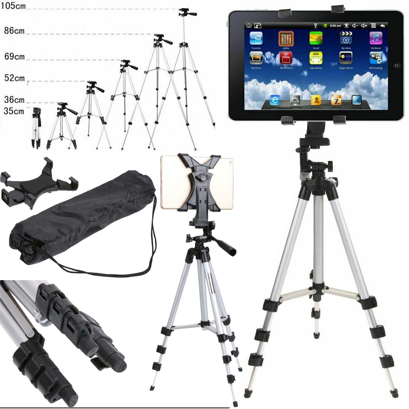 102cm Portable Travel Aluminum Camera Tripod Stand with Tablet iPad Holder Set