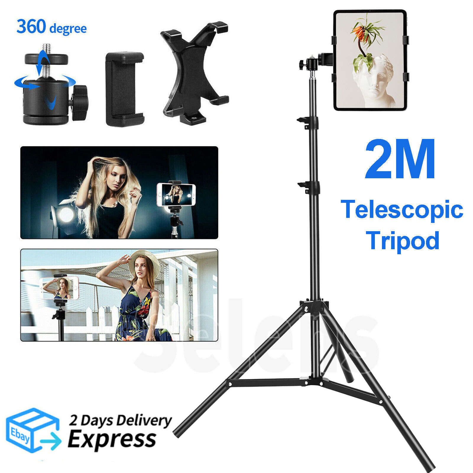 2M Tripod Stand Telescopic for Camera Tablet Pad Phone Holder Selfie Ring light