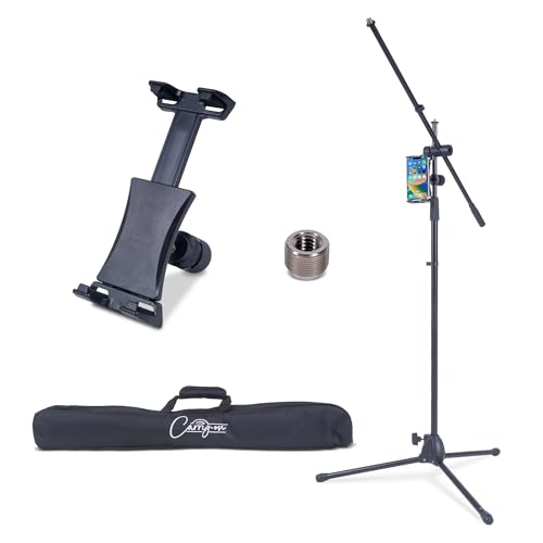 Carry-on Folding Microphone Stand with Phone or Tablet Holder, Heavy Duty Collapsible Tripod Stand, Storage Bag Included, Adjustable, Perfect for Performance