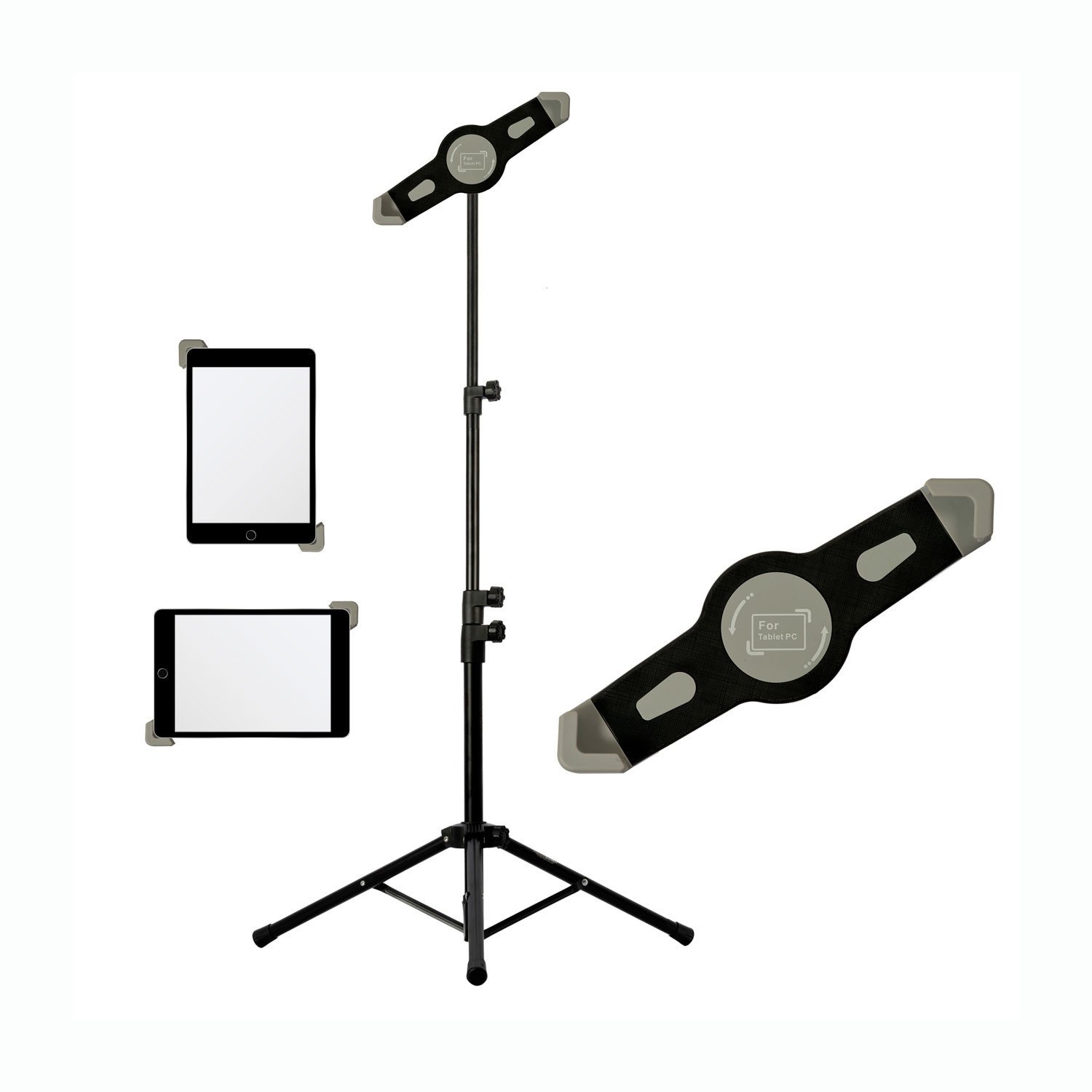 IPad Tripod Stand, Height Adjustable Tablet Floor Stand, Tablet Holder Stand with 360° Rotating iPad Tripod Mount for iPad, iPad Mini, iPad Pro, iPad Air and other 5.5-12.9” Phone Tablet